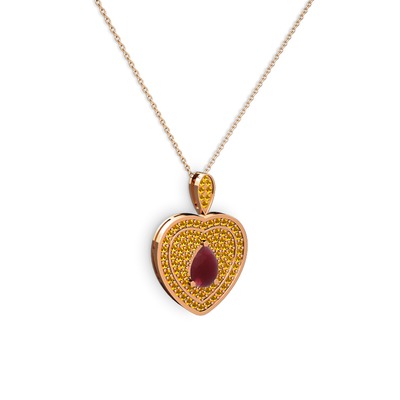 Kök yakut ve sitrin 18 ayar rose altın kolye (40 cm rose altın rolo zincir)