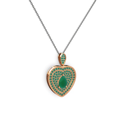 Kök zümrüt 8 ayar rose altın kolye (40 cm gümüş rolo zincir)
