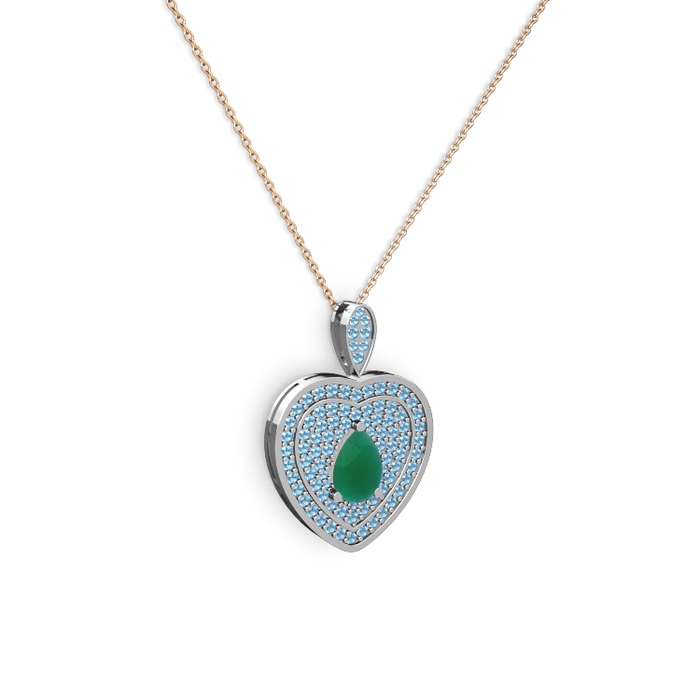 Kök zümrüt ve akuamarin 14 ayar beyaz altın kolye (40 cm gümüş rolo zincir)