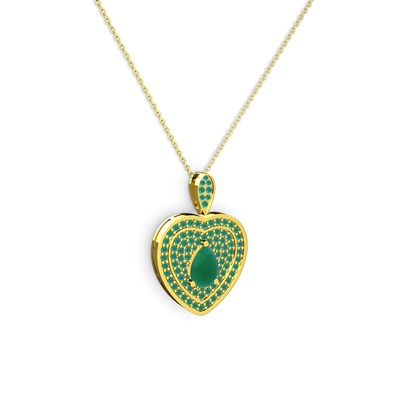 Kök zümrüt 925 ayar altın kaplama gümüş kolye (40 cm altın rolo zincir)