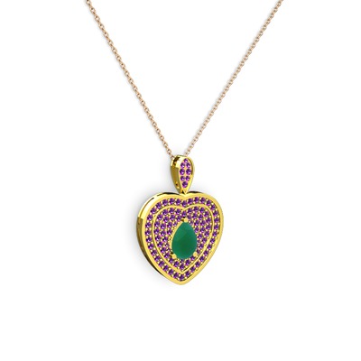 Kök zümrüt ve ametist 8 ayar altın kolye (40 cm gümüş rolo zincir)