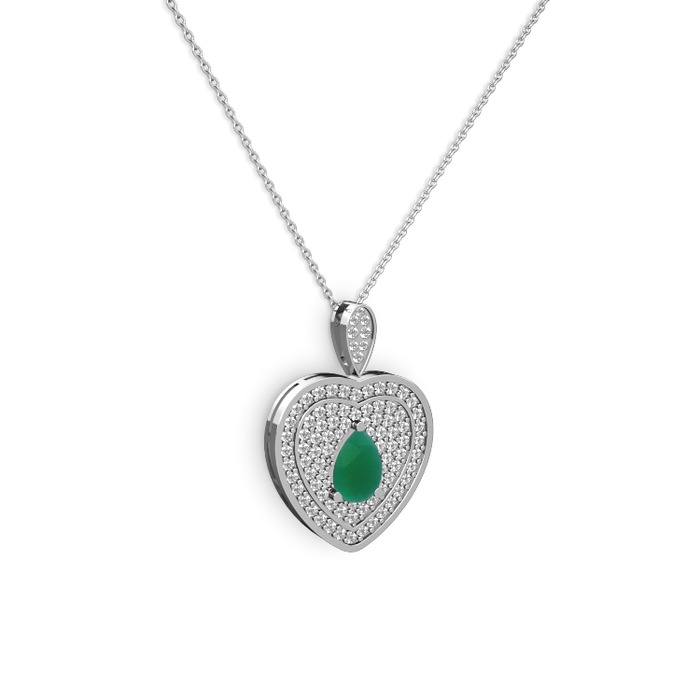 Kök zümrüt ve beyaz zirkon 925 ayar gümüş kolye (40 cm gümüş rolo zincir)
