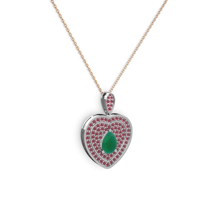 Kök zümrüt ve kök yakut 925 ayar gümüş kolye (40 cm rose altın rolo zincir)