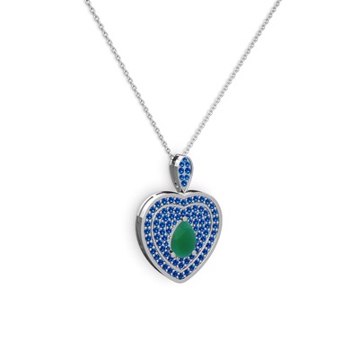 Kök zümrüt ve lab safir 18 ayar beyaz altın kolye (40 cm beyaz altın rolo zincir)