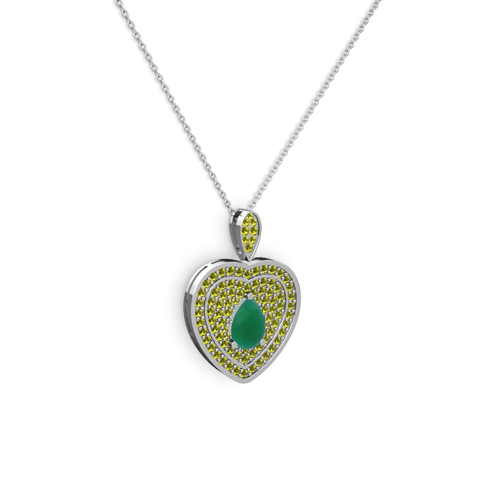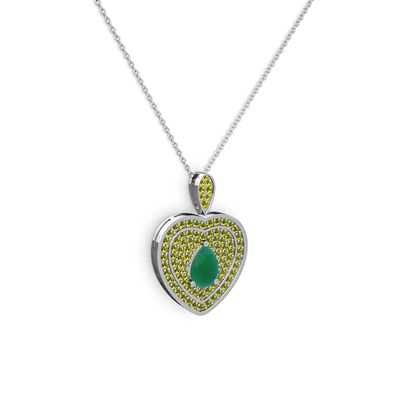 Kök zümrüt ve peridot 14 ayar beyaz altın kolye (40 cm beyaz altın rolo zincir)