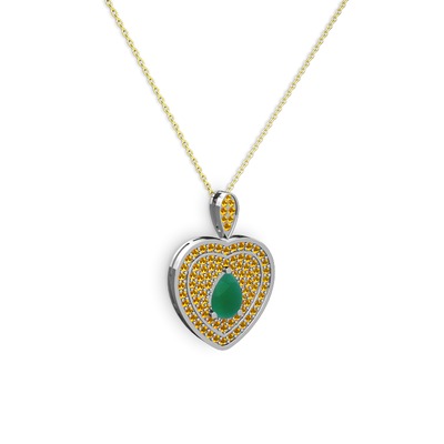 Kök zümrüt ve sitrin 14 ayar beyaz altın kolye (40 cm altın rolo zincir)
