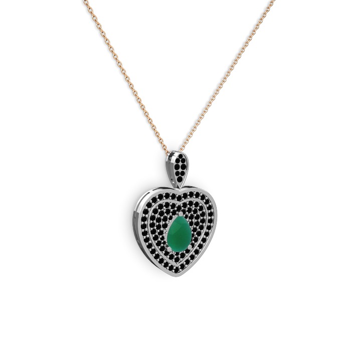Kök zümrüt ve siyah zirkon 8 ayar beyaz altın kolye (40 cm rose altın rolo zincir)