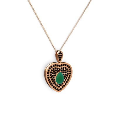 Kök zümrüt ve siyah zirkon 8 ayar rose altın kolye (40 cm rose altın rolo zincir)