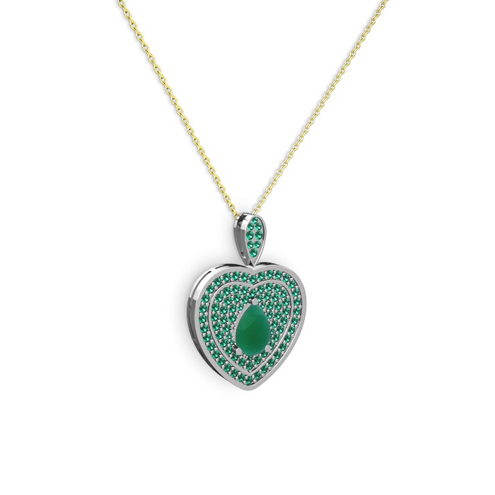 Kök zümrüt ve yeşil kuvars 18 ayar beyaz altın kolye (40 cm gümüş rolo zincir)