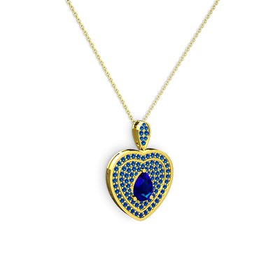 Lab safir 8 ayar altın kolye (40 cm altın rolo zincir)