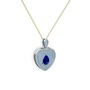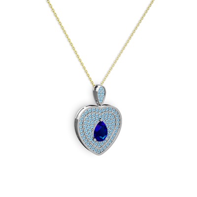 Lab safir ve akuamarin 18 ayar beyaz altın kolye (40 cm gümüş rolo zincir)