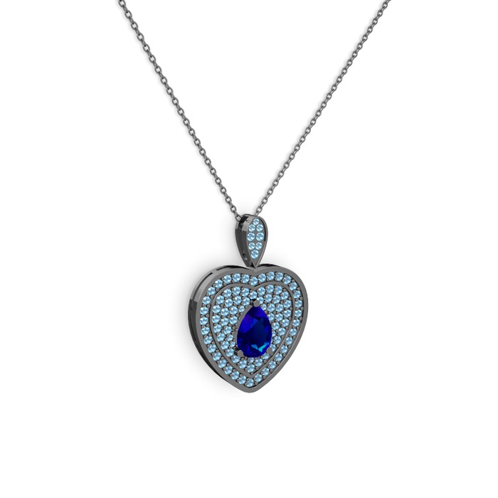 Lab safir ve akuamarin 925 ayar siyah rodyum kaplama gümüş kolye (40 cm gümüş rolo zincir)