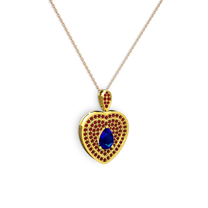 Lab safir ve garnet 14 ayar altın kolye (40 cm rose altın rolo zincir)