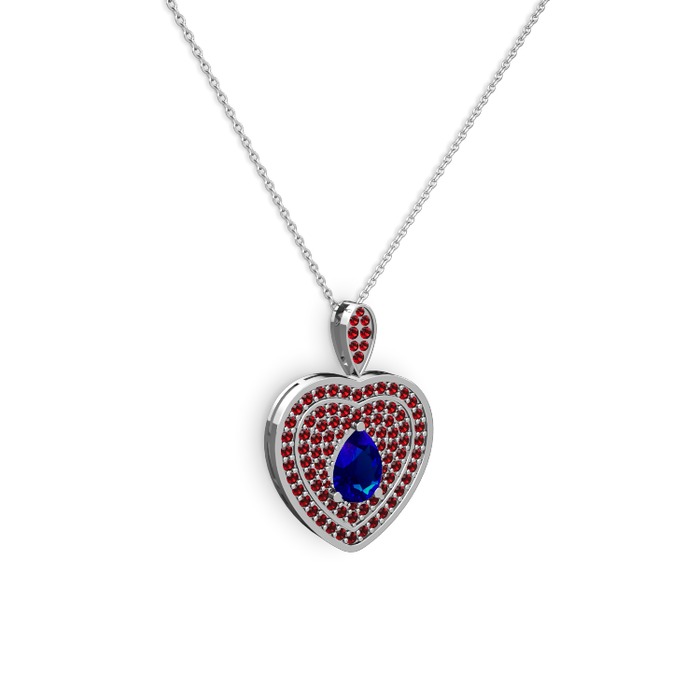 Lab safir ve garnet 925 ayar gümüş kolye (40 cm gümüş rolo zincir)
