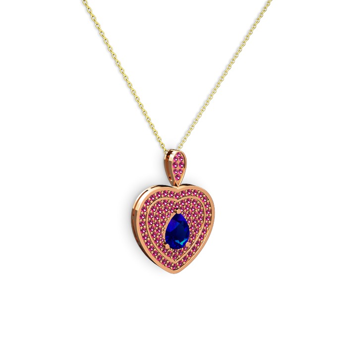 Lab safir ve rodolit garnet 18 ayar rose altın kolye (40 cm altın rolo zincir)