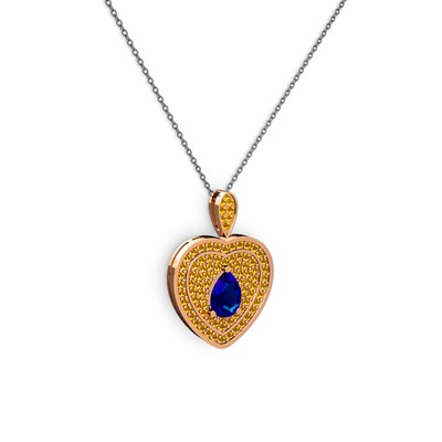 Lab safir ve sitrin 8 ayar rose altın kolye (40 cm gümüş rolo zincir)