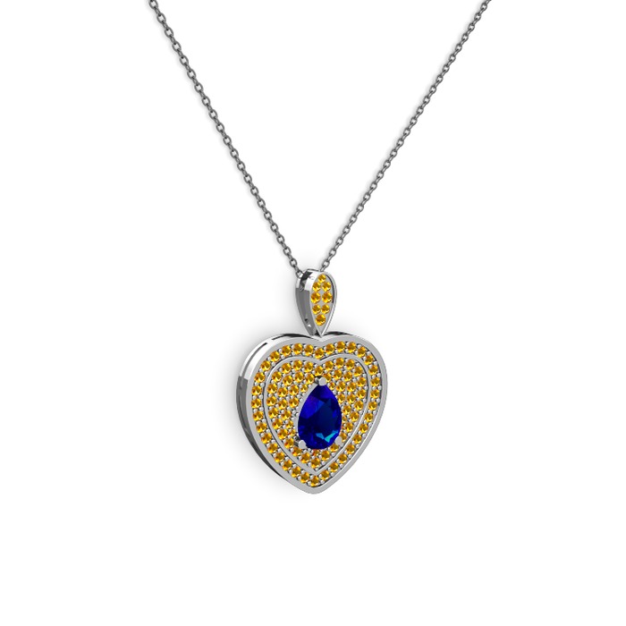 Lab safir ve sitrin 925 ayar gümüş kolye (40 cm gümüş rolo zincir)