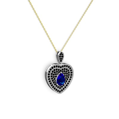 Lab safir ve siyah zirkon 14 ayar beyaz altın kolye (40 cm gümüş rolo zincir)