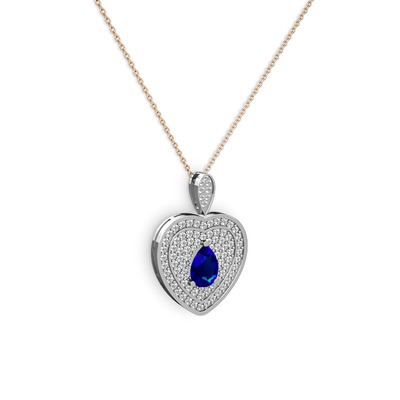 Lab safir ve swarovski 18 ayar beyaz altın kolye (40 cm rose altın rolo zincir)