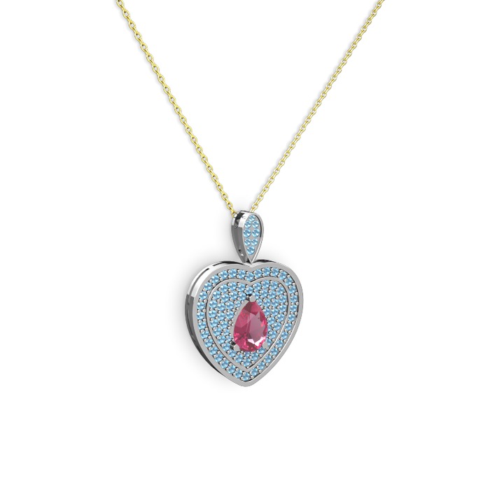 Pembe kuvars ve akuamarin 14 ayar beyaz altın kolye (40 cm gümüş rolo zincir)