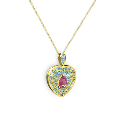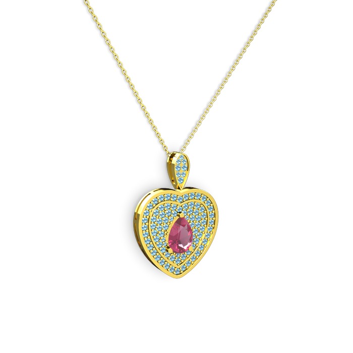 Pembe kuvars ve akuamarin 18 ayar altın kolye (40 cm altın rolo zincir)