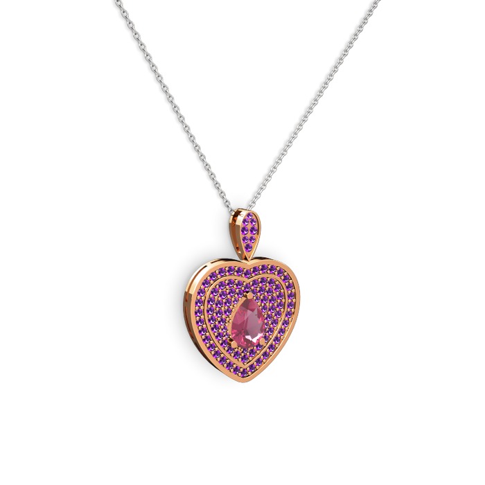 Pembe kuvars ve ametist 14 ayar rose altın kolye (40 cm beyaz altın rolo zincir)
