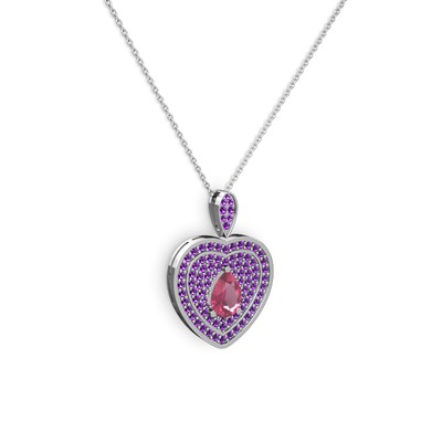 Pembe kuvars ve ametist 18 ayar beyaz altın kolye (40 cm beyaz altın rolo zincir)