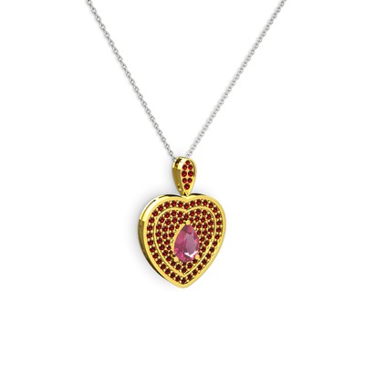 Pembe kuvars ve garnet 18 ayar altın kolye (40 cm beyaz altın rolo zincir)