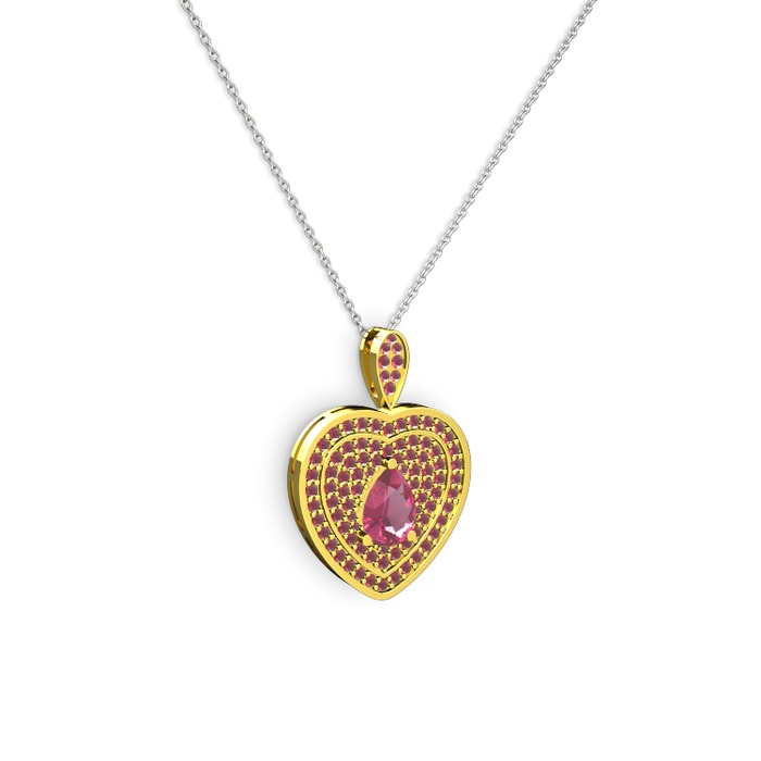 Pembe kuvars ve kök yakut 8 ayar altın kolye (40 cm beyaz altın rolo zincir)
