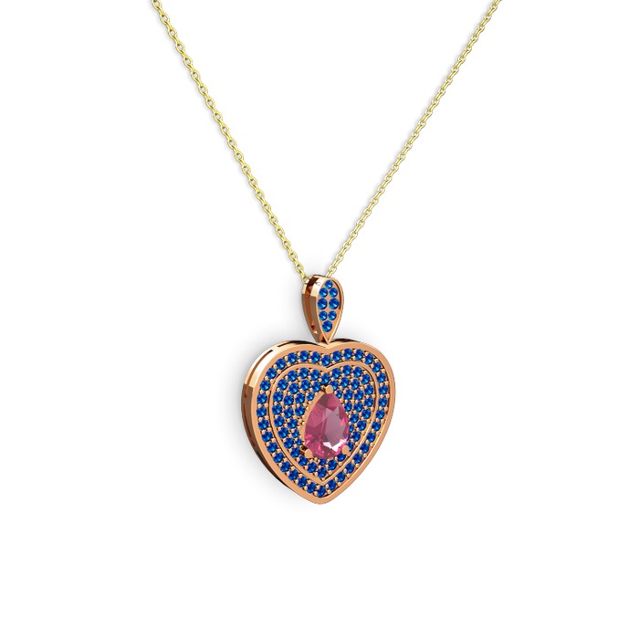 Pembe kuvars ve lab safir 18 ayar rose altın kolye (40 cm altın rolo zincir)