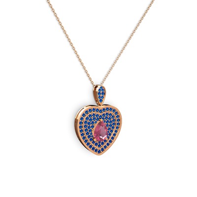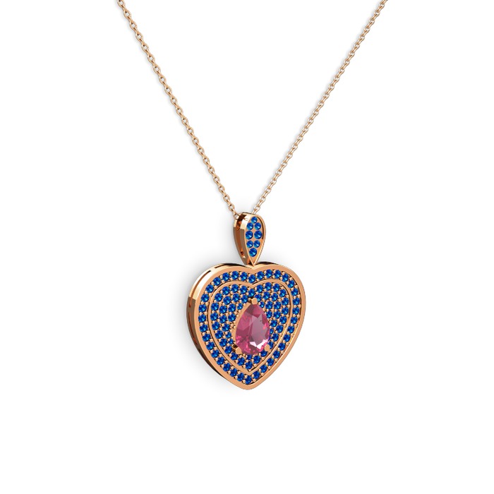 Pembe kuvars ve lab safir 18 ayar rose altın kolye (40 cm rose altın rolo zincir)