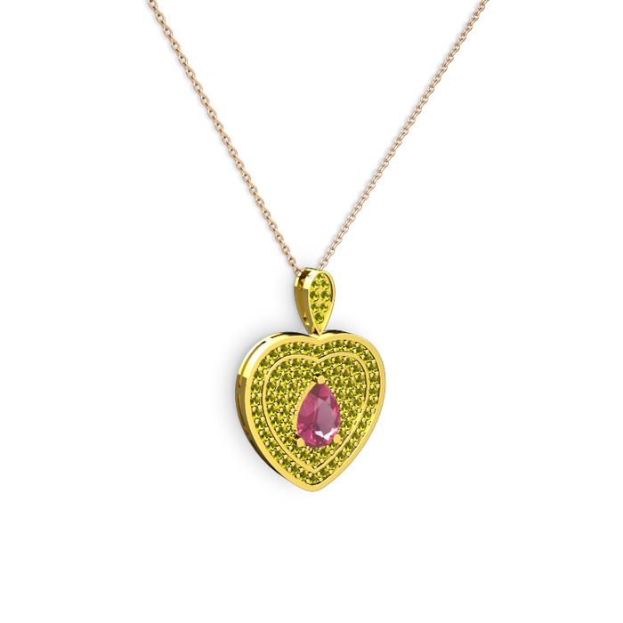 Pembe kuvars ve peridot 925 ayar altın kaplama gümüş kolye (40 cm gümüş rolo zincir)