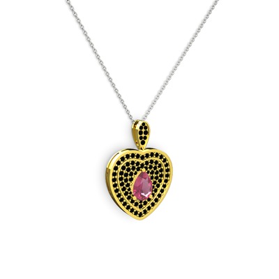 Pembe kuvars ve siyah zirkon 14 ayar altın kolye (40 cm beyaz altın rolo zincir)