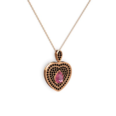 Pembe kuvars ve siyah zirkon 925 ayar rose altın kaplama gümüş kolye (40 cm gümüş rolo zincir)