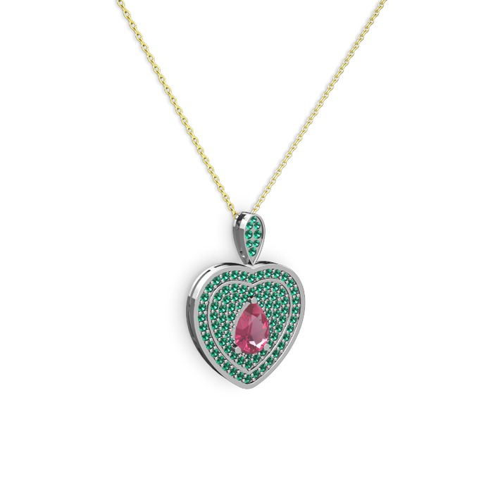 Pembe kuvars ve yeşil kuvars 18 ayar beyaz altın kolye (40 cm altın rolo zincir)