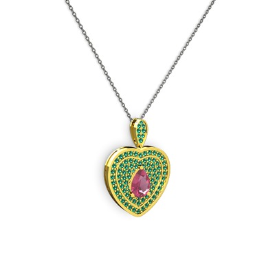 Pembe kuvars ve yeşil kuvars 925 ayar altın kaplama gümüş kolye (40 cm gümüş rolo zincir)