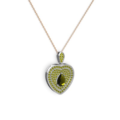 Peridot 8 ayar beyaz altın kolye (40 cm rose altın rolo zincir)
