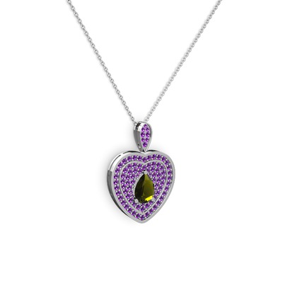 Peridot ve ametist 925 ayar gümüş kolye (40 cm gümüş rolo zincir)