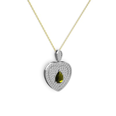 Peridot ve beyaz zirkon 14 ayar beyaz altın kolye (40 cm gümüş rolo zincir)