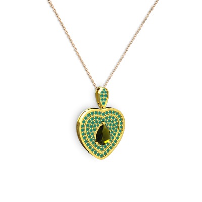Peridot ve kök zümrüt 18 ayar altın kolye (40 cm rose altın rolo zincir)