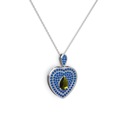 Peridot ve lab safir 8 ayar beyaz altın kolye (40 cm beyaz altın rolo zincir)