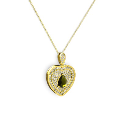 Peridot ve swarovski 18 ayar altın kolye (40 cm altın rolo zincir)