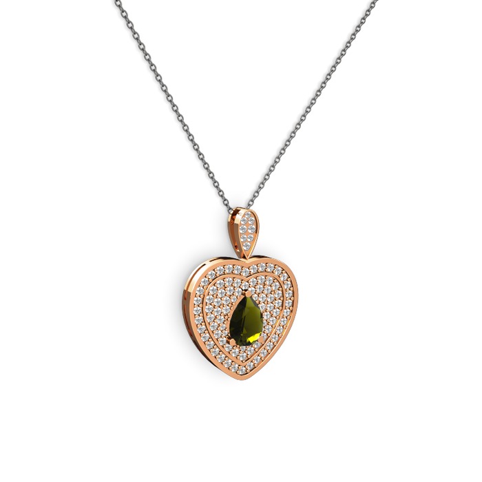 Peridot ve swarovski 8 ayar rose altın kolye (40 cm gümüş rolo zincir)