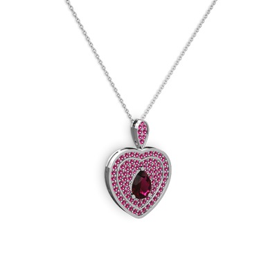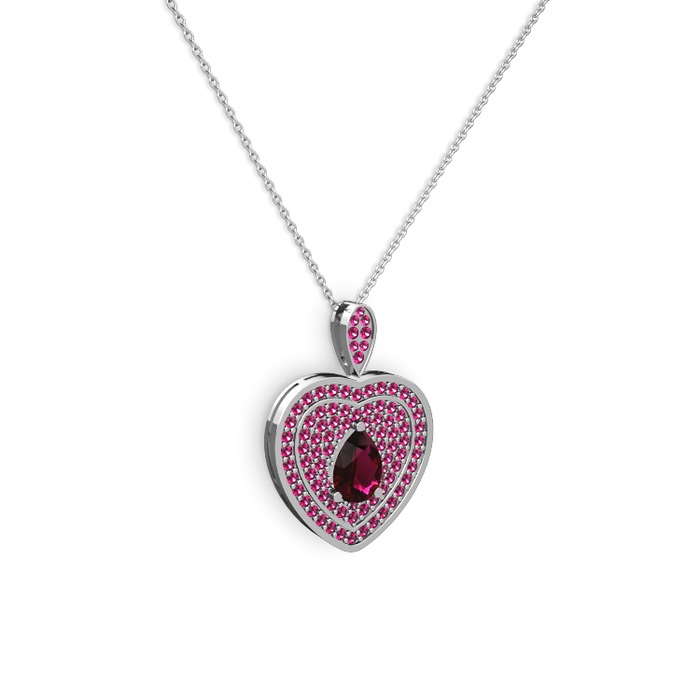 Rodolit garnet 14 ayar beyaz altın kolye (40 cm beyaz altın rolo zincir)