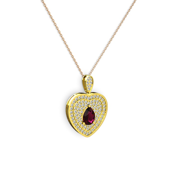 Rodolit garnet ve beyaz zirkon 14 ayar altın kolye (40 cm gümüş rolo zincir)
