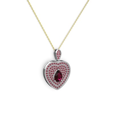 Rodolit garnet ve kök yakut 18 ayar beyaz altın kolye (40 cm altın rolo zincir)