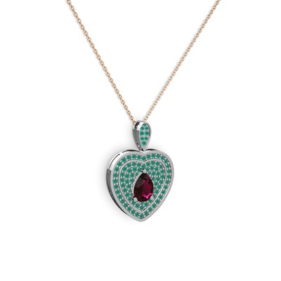 Rodolit garnet ve kök zümrüt 14 ayar beyaz altın kolye (40 cm rose altın rolo zincir)