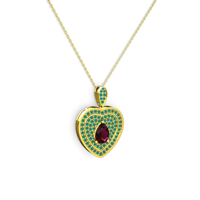 Rodolit garnet ve kök zümrüt 925 ayar altın kaplama gümüş kolye (40 cm altın rolo zincir)