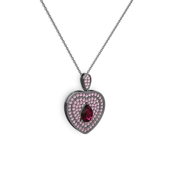 Rodolit garnet ve pembe kuvars 925 ayar siyah rodyum kaplama gümüş kolye (40 cm gümüş rolo zincir)