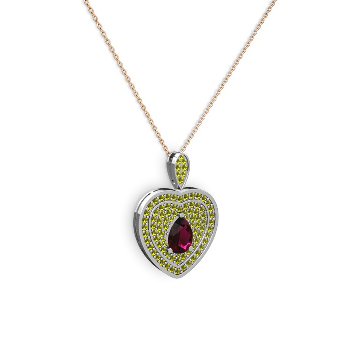 Rodolit garnet ve peridot 8 ayar beyaz altın kolye (40 cm rose altın rolo zincir)